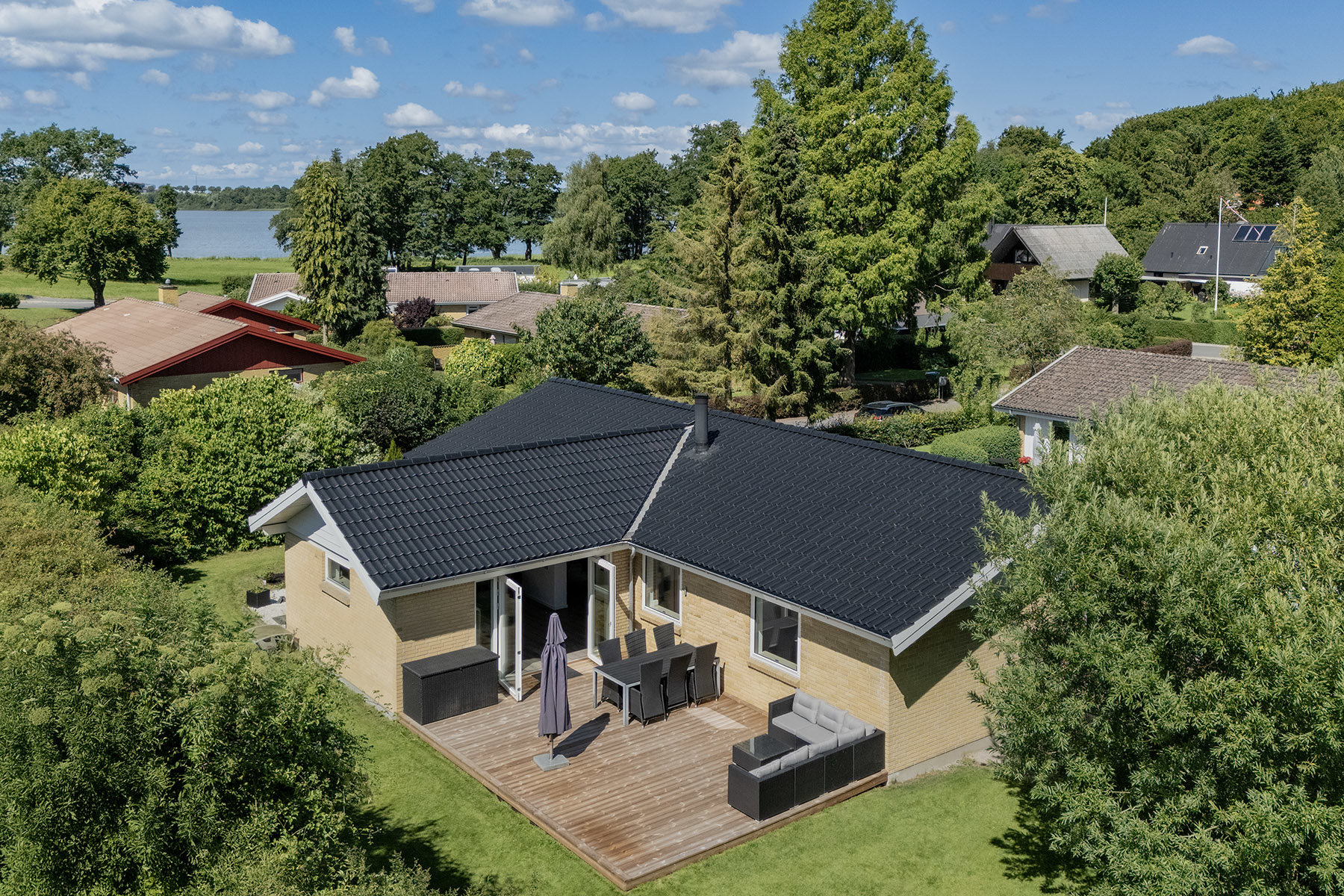 Ejendommen ligger i en rolig grundejerforening med et stærk sammenhold midt i de fineste grønne omgivelser og med utrolig kort afstand til både skole, daginstitution og indkøb. Sorø byder på et rigt kultur- og foreningsliv, naturskønne omgivelser og gode transportmuligheder – bl.a. med togforbindelse direkte til både København og Odense. Søerne og skovene omkring Sorø giver gode muligheder for gå- og løbeture, og byens hyggelige centrum med caféer og specialbutikker ligger blot få minutter væk.